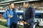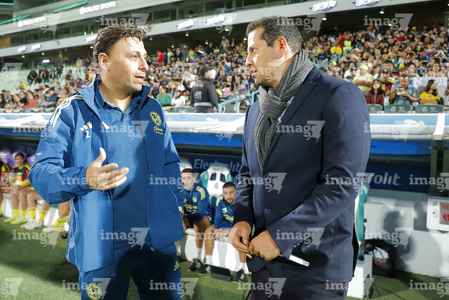 Torreón, Coahuila, 5 de enero de 2026. Angel Villacampa, director técnico y Jhonatan Lazcano, director técnico, durante el partido correspondiente a la jornada 1 del torneo Clausura 2026 de la Liga BBVA MX Femenil, entre las Guerreras de Santos Laguna y las Águilas del América, realizado en el estadio Corona. Foto: Imago7/Saul Perales