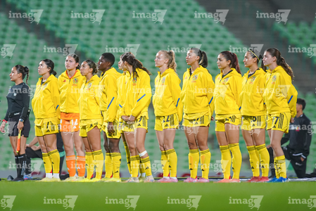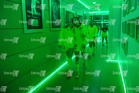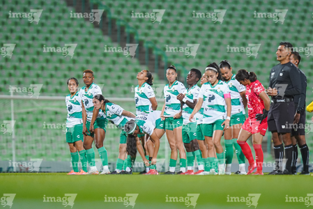 Torreón, Coahuila, 5 de enero de 2026. Protocolo, durante el partido correspondiente a la jornada 1 del torneo Clausura 2026 de la Liga BBVA MX Femenil, entre las Guerreras de Santos Laguna y las Águilas del América, realizado en el estadio Corona. Foto: Imago7/Saul Perales