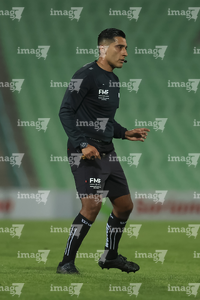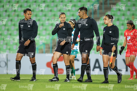 Torreón, Coahuila, 5 de enero de 2026. Iván Alberto Salazar, árbitro central, durante el partido correspondiente a la jornada 1 del torneo Clausura 2026 de la Liga BBVA MX Femenil, entre las Guerreras de Santos Laguna y las Águilas del América, realizado en el estadio Corona. Foto: Imago7/ Erick Saavedra