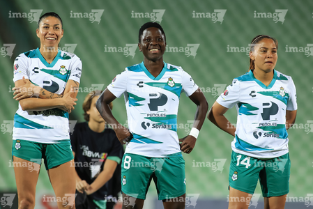Torreón, Coahuila, 5 de enero de 2026. Foto de equipo de Santos, durante el partido correspondiente a la jornada 1 del torneo Clausura 2026 de la Liga BBVA MX Femenil, entre las Guerreras de Santos Laguna y las Águilas del América, realizado en el estadio Corona. Foto: Imago7/Saul Perales