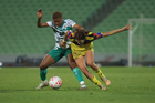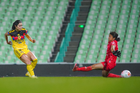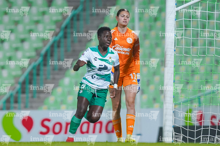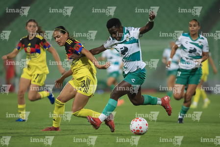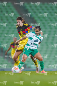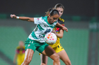 Torreón, Coahuila, 5 de enero de 2026. Sandra Nabweteme (I), durante el partido correspondiente a la jornada 1 del torneo Clausura 2026 de la Liga BBVA MX Femenil, entre las Guerreras de Santos Laguna y las Águilas del América, realizado en el estadio Corona. Foto: Imago7/ Erick Saavedra