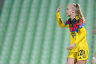 Torreón, Coahuila, 5 de enero de 2026. Sandra Paños anota gol, durante el partido correspondiente a la jornada 1 del torneo Clausura 2026 de la Liga BBVA MX Femenil, entre las Guerreras de Santos Laguna y las Águilas del América, realizado en el estadio Corona. Foto: Imago7/ Erick Saavedra