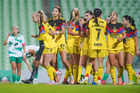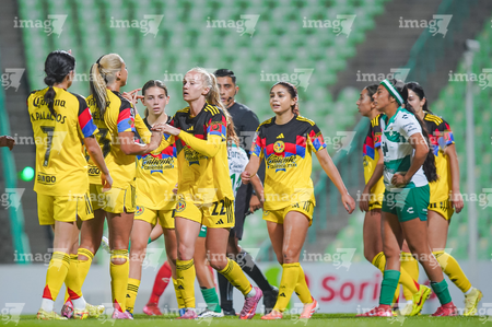Torreón, Coahuila, 5 de enero de 2026. Jugadoras del América femenil, durante el partido correspondiente a la jornada 1 del torneo Clausura 2026 de la Liga BBVA MX Femenil, entre las Guerreras de Santos Laguna y las Águilas del América, realizado en el estadio Corona. Foto: Imago7/ Erick Saavedra
