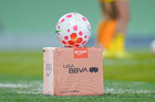 Torreón, Coahuila, 5 de enero de 2026. Balón de futbol Nike Control sobre caja de Amazon, durante el partido correspondiente a la jornada 1 del torneo Clausura 2026 de la Liga BBVA MX Femenil, entre las Guerreras de Santos Laguna y las Águilas del América, realizado en el estadio Corona. Foto: Imago7/ Erick Saavedra