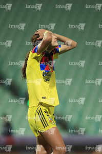 Torreón, Coahuila, 5 de enero de 2026. Sandra Nabweteme en lamento, durante el partido correspondiente a la jornada 1 del torneo Clausura 2026 de la Liga BBVA MX Femenil, entre las Guerreras de Santos Laguna y las Águilas del América, realizado en el estadio Corona. Foto: Imago7/ Erick Saavedra