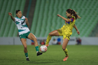 Torreón, Coahuila, 5 de enero de 2026. Nicol de León, durante el partido correspondiente a la jornada 1 del torneo Clausura 2026 de la Liga BBVA MX Femenil, entre las Guerreras de Santos Laguna y las Águilas del América, realizado en el estadio Corona. Foto: Imago7/Saul Perales