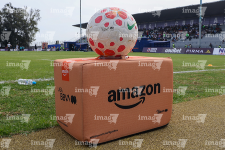 Cuernavaca, Morelos, 31 de enero de 2026. Balón de futbol Nike Control sobre caja de Amazon, durante el partido correspondiente a la jornada 6 del torneo Clausura 2026 de la Liga BBVA MX Femenil, entre la Máquina Celeste del Cruz Azul y el Club Querétaro, realizado en el estadio Centenario. Foto: Imago7/ Daniel Sydney