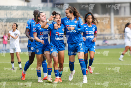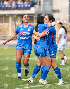 Cuernavaca, Morelos, 31 de enero de 2026. Jugadoras de Cruz Azul femenil en festejo de gol, durante el partido correspondiente a la jornada 6 del torneo Clausura 2026 de la Liga BBVA MX Femenil, entre la Máquina Celeste del Cruz Azul y el Club Querétaro, realizado en el estadio Centenario. Foto: Imago7/ Daniel Sydney