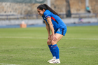 Cuernavaca, Morelos, 31 de enero de 2026. Ana Lucía Martínez en lamento, durante el partido correspondiente a la jornada 6 del torneo Clausura 2026 de la Liga BBVA MX Femenil, entre la Máquina Celeste del Cruz Azul y el Club Querétaro, realizado en el estadio Centenario. Foto: Imago7/ Daniel Sydney
