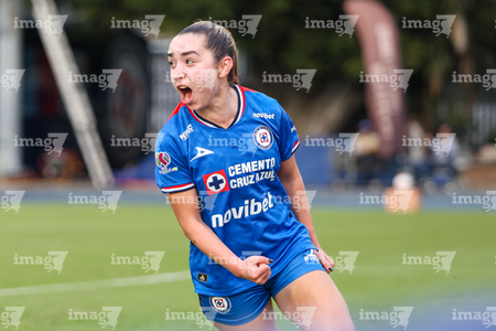 Cuernavaca, Morelos, 31 de enero de 2026. Daniela Calderón en festejo de gol anulado, durante el partido correspondiente a la jornada 6 del torneo Clausura 2026 de la Liga BBVA MX Femenil, entre la Máquina Celeste del Cruz Azul y el Club Querétaro, realizado en el estadio Centenario. Foto: Imago7/ Daniel Sydney