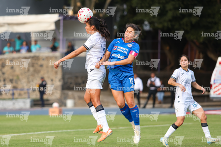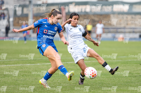 Cuernavaca, Morelos, 31 de enero de 2026. Ivonne Gutiérrez y Sofía Martínez, durante el partido correspondiente a la jornada 6 del torneo Clausura 2026 de la Liga BBVA MX Femenil, entre la Máquina Celeste del Cruz Azul y el Club Querétaro, realizado en el estadio Centenario. Foto: Imago7/ Daniel Sydney