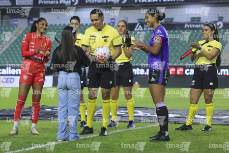 Mazatlán, Sinaloa, 31 de enero de 2026. Protocolo, durante el partido correspondiente a la jornada 6 del torneo Clausura 2026 de la Liga BBVA MX Femenil, entre las Cañoneras del Mazatlán FC y las Centellas del Necaxa, realizado en el estadio El Encanto. Foto: Imago7/ Saul Perales