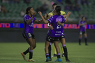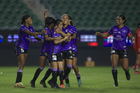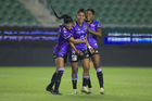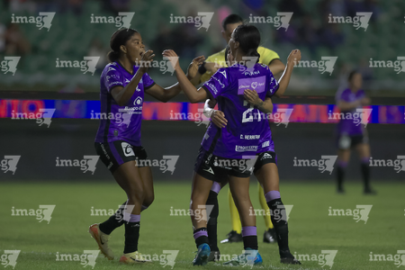 Mazatlán, Sinaloa, 31 de enero de 2026. Jennifer Amaro recibe gol, durante el partido correspondiente a la jornada 6 del torneo Clausura 2026 de la Liga BBVA MX Femenil, entre las Cañoneras del Mazatlán FC y las Centellas del Necaxa, realizado en el estadio El Encanto. Foto: Imago7/ Saul Perales