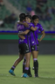 Mazatlán, Sinaloa, 31 de enero de 2026. Lucy Ortiz y Taiwo Lawal en festejo de gol, durante el partido correspondiente a la jornada 6 del torneo Clausura 2026 de la Liga BBVA MX Femenil, entre las Cañoneras del Mazatlán FC y las Centellas del Necaxa, realizado en el estadio El Encanto. Foto: Imago7/ Saul Perales