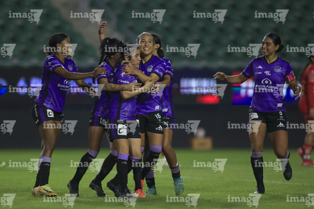 Mazatlán, Sinaloa, 31 de enero de 2026. Jugadoras del Mazatlán femenil en festejo, durante el partido correspondiente a la jornada 6 del torneo Clausura 2026 de la Liga BBVA MX Femenil, entre las Cañoneras del Mazatlán FC y las Centellas del Necaxa, realizado en el estadio El Encanto. Foto: Imago7/ Saul Perales