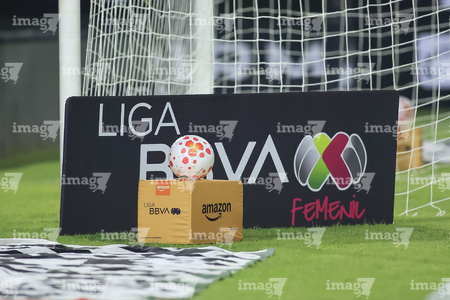 Mazatlán, Sinaloa, 31 de enero de 2026. Balón de futbol Nike Control sobre caja de Amazon, durante el partido correspondiente a la jornada 6 del torneo Clausura 2026 de la Liga BBVA MX Femenil, entre las Cañoneras del Mazatlán FC y las Centellas del Necaxa, realizado en el estadio El Encanto. Foto: Imago7/ Saul Perales