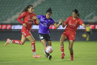 Mazatlán, Sinaloa, 31 de enero de 2026. Portigoles, durante el partido correspondiente a la jornada 6 del torneo Clausura 2026 de la Liga BBVA MX Femenil, entre las Cañoneras del Mazatlán FC y las Centellas del Necaxa, realizado en el estadio El Encanto. Foto: Imago7/ Saul Perales