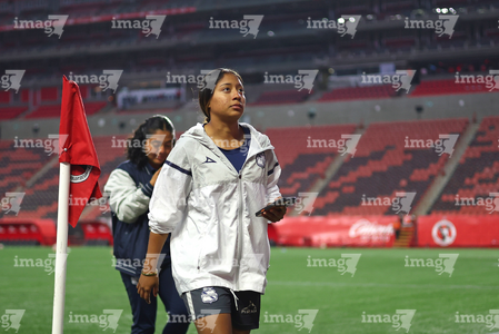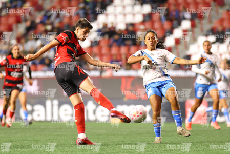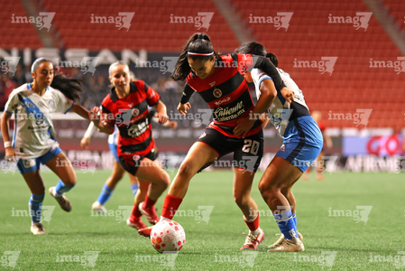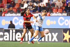 Tijuana, Baja California, 31 de enero de 2026. Karyme Martínez (D), durante el partido correspondiente a la jornada 6 del torneo Clausura 2026 de la Liga BBVA MX Femenil, entre las Xolas de Tijuana y el Club Puebla, realizado en el estadio Caliente. Foto: Imago7/ David Vega