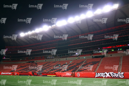 Tijuana, Baja California, 31 de enero de 2026. Panorámica del estadio, durante el partido correspondiente a la jornada 6 del torneo Clausura 2026 de la Liga BBVA MX Femenil, entre las Xolas de Tijuana y el Club Puebla, realizado en el estadio Caliente. Foto: Imago7/ David Vega