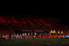 Tijuana, Baja California, 31 de enero de 2026. Protocolo, durante el partido correspondiente a la jornada 6 del torneo Clausura 2026 de la Liga BBVA MX Femenil, entre las Xolas de Tijuana y el Club Puebla, realizado en el estadio Caliente. Foto: Imago7/ David Vega