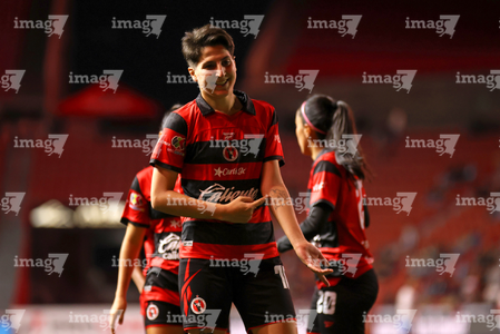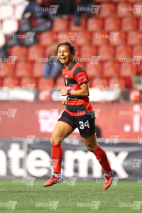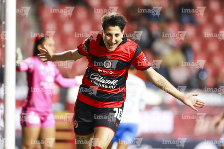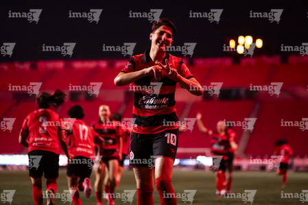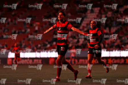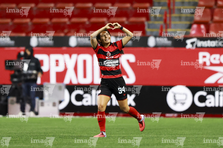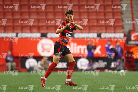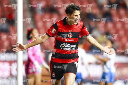 Tijuana, Baja California, 31 de enero de 2026. Kader Hancar en festejo de gol, durante el partido correspondiente a la jornada 6 del torneo Clausura 2026 de la Liga BBVA MX Femenil, entre las Xolas de Tijuana y el Club Puebla, realizado en el estadio Caliente. Foto: Imago7/ Alejandro Gutiérrez Mora