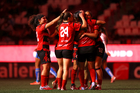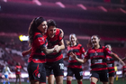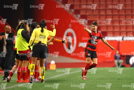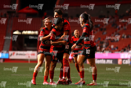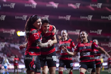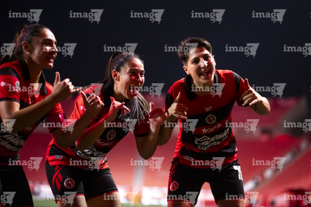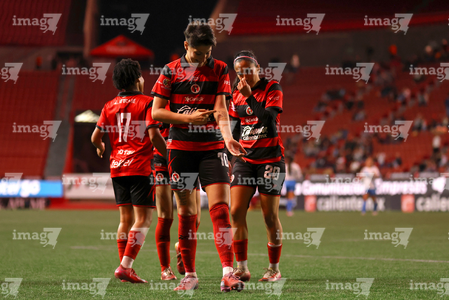 Tijuana, Baja California, 31 de enero de 2026. Jugadoras de Xolas en festejo de gol, durante el partido correspondiente a la jornada 6 del torneo Clausura 2026 de la Liga BBVA MX Femenil, entre las Xolas de Tijuana y el Club Puebla, realizado en el estadio Caliente. Foto: Imago7/ David Vega