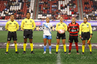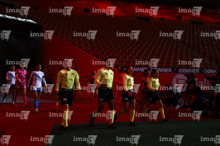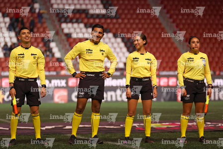 Tijuana, Baja California, 31 de enero de 2026. Árbitros, durante el partido correspondiente a la jornada 6 del torneo Clausura 2026 de la Liga BBVA MX Femenil, entre las Xolas de Tijuana y el Club Puebla, realizado en el estadio Caliente. Foto: Imago7/ David Vega