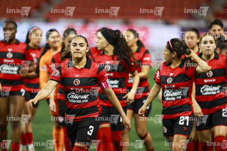 Tijuana, Baja California, 31 de enero de 2026. Protocolo, durante el partido correspondiente a la jornada 6 del torneo Clausura 2026 de la Liga BBVA MX Femenil, entre las Xolas de Tijuana y el Club Puebla, realizado en el estadio Caliente. Foto: Imago7/ Alejandro Gutiérrez Mora