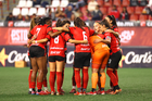 Tijuana, Baja California, 31 de enero de 2026. Jugadoras de Xolas, durante el partido correspondiente a la jornada 6 del torneo Clausura 2026 de la Liga BBVA MX Femenil, entre las Xolas de Tijuana y el Club Puebla, realizado en el estadio Caliente. Foto: Imago7/ David Vega