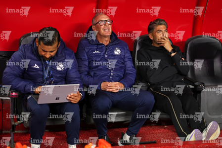 Tijuana, Baja California, 31 de enero de 2026. Sigifredo Mercado, auxiliar técnico y Carlos Adrián Morales, director técnico, durante el partido correspondiente a la jornada 6 del torneo Clausura 2026 de la Liga BBVA MX Femenil, entre las Xolas de Tijuana y el Club Puebla, realizado en el estadio Caliente. Foto: Imago7/ David Vega
