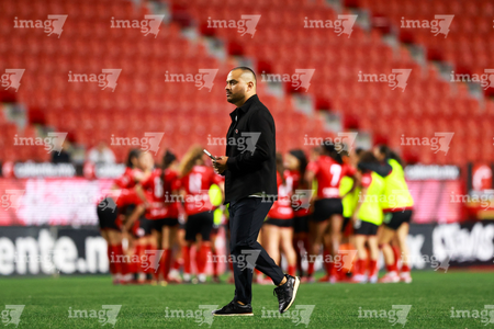 Tijuana, Baja California, 31 de enero de 2026. Fernando Samayoa, director técnico, durante el partido correspondiente a la jornada 6 del torneo Clausura 2026 de la Liga BBVA MX Femenil, entre las Xolas de Tijuana y el Club Puebla, realizado en el estadio Caliente. Foto: Imago7/ David Vega