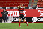 Tijuana, Baja California, 31 de enero de 2026. Brianna Chagolla en festejo de gol, durante el partido correspondiente a la jornada 6 del torneo Clausura 2026 de la Liga BBVA MX Femenil, entre las Xolas de Tijuana y el Club Puebla, realizado en el estadio Caliente. Foto: Imago7/ Alejandro Gutiérrez Mora