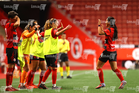 Tijuana, Baja California, 31 de enero de 2026. Jugadoras de Xolas, durante el partido correspondiente a la jornada 6 del torneo Clausura 2026 de la Liga BBVA MX Femenil, entre las Xolas de Tijuana y el Club Puebla, realizado en el estadio Caliente. Foto: Imago7/ Alejandro Gutiérrez Mora