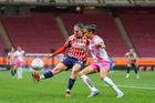 Zapopan, Jalisco, 16 de febrero de 2026. , durante el partido correspondiente a la jornada 9 del torneo Clausura 2026 de la Liga BBVA MX Femenil, entre las Chivas Rayadas del Guadalajara y las Rojinegras del Atlas, realizado en el estadio Akron. Foto: Imago7/ Jair Terán
