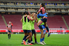 Zapopan, Jalisco, 16 de febrero de 2026. , durante el partido correspondiente a la jornada 9 del torneo Clausura 2026 de la Liga BBVA MX Femenil, entre las Chivas Rayadas del Guadalajara y las Rojinegras del Atlas, realizado en el estadio Akron. Foto: Imago7/Cristian Hernandez