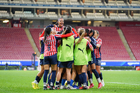 Zapopan, Jalisco, 16 de febrero de 2026. , durante el partido correspondiente a la jornada 9 del torneo Clausura 2026 de la Liga BBVA MX Femenil, entre las Chivas Rayadas del Guadalajara y las Rojinegras del Atlas, realizado en el estadio Akron. Foto: Imago7/