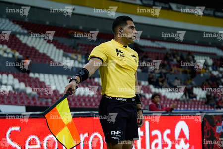 Guadalajara, Jalisco, 20 de febrero de 2026. Alejandro Rodríguez Lares, árbitro asistente, durante el partido correspondiente a la jornada 10 del torneo Clausura 2026 de la Liga BBVA MX Femenil, entre las Rojinegras del Atlas y la Máquina Celeste del Cruz Azul, realizado en el estadio Jalisco. Foto: Imago7/ Alejandro Lias