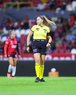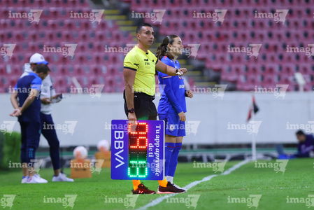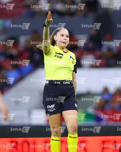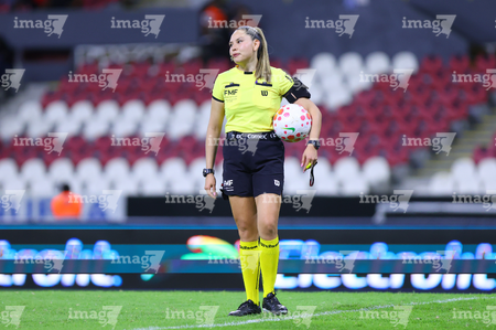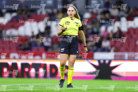 Guadalajara, Jalisco, 20 de febrero de 2026. Ana Cristina Guarneros, árbitra central, durante el partido correspondiente a la jornada 10 del torneo Clausura 2026 de la Liga BBVA MX Femenil, entre las Rojinegras del Atlas y la Máquina Celeste del Cruz Azul, realizado en el estadio Jalisco. Foto: Imago7/ Juan Carlos Cubeyro.