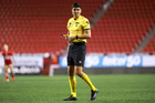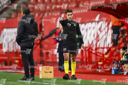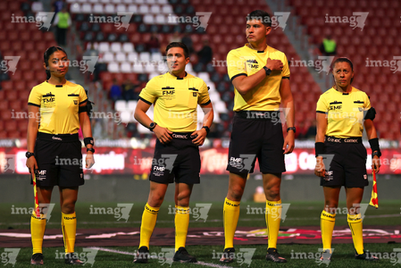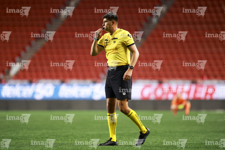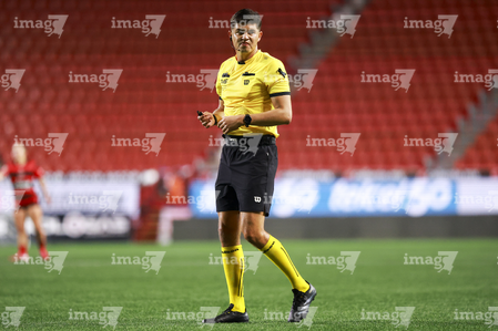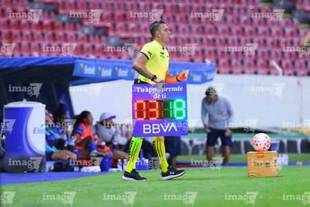 Guadalajara, Jalisco, 20 de febrero de 2026. Edwin Morfín, cuarto árbitro, durante el partido correspondiente a la jornada 10 del torneo Clausura 2026 de la Liga BBVA MX Femenil, entre las Rojinegras del Atlas y la Máquina Celeste del Cruz Azul, realizado en el estadio Jalisco. Foto: Imago7/ Juan Carlos Cubeyro.