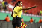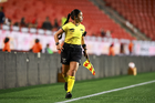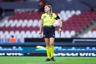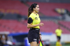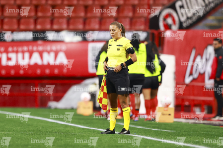 Tijuana, Baja California, 21 de febrero de 2026. Azucena Baños Cruz, árbitro asistente, durante el partido correspondiente a la jornada 10 del torneo Clausura 2026 de la Liga BBVA MX Femenil, entre las Xolas de Tijuana y las Esmeraldas del León, realizado en el estadio Caliente. Foto: Imago7/ Alejandro Gutiérrez Mora