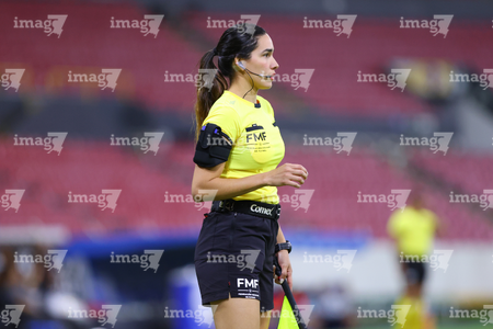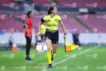Guadalajara, Jalisco, 20 de febrero de 2026. Melanie Esmeralda Villavicencio, árbitra asistente, durante el partido correspondiente a la jornada 10 del torneo Clausura 2026 de la Liga BBVA MX Femenil, entre las Rojinegras del Atlas y la Máquina Celeste del Cruz Azul, realizado en el estadio Jalisco. Foto: Imago7/ Juan Carlos Cubeyro.