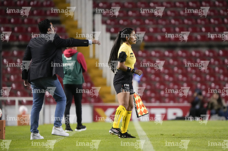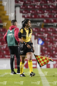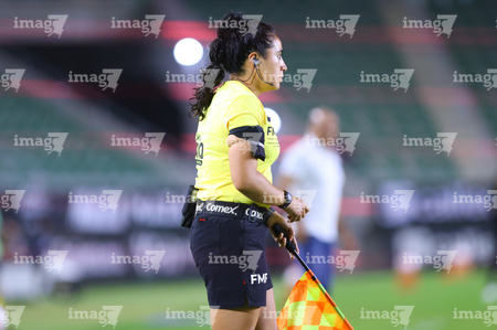 Querétaro, Querétaro, 12 de marzo de 2026. Paola Gabriela Martínez, árbitra asistente, durante el partido correspondiente a la jornada 11 del torneo Clausura 2026 de la Liga BBVA MX Femenil, entre el Club Querétaro y las Rojinegras del Atlas, realizado en el estadio Olímpico Alameda. Foto: Imago7/ Sebastian Laureano Miranda
