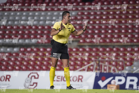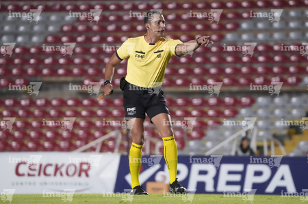 Querétaro, Querétaro, 12 de marzo de 2026. Edwin Eduardo Morfín, árbitro central, durante el partido correspondiente a la jornada 11 del torneo Clausura 2026 de la Liga BBVA MX Femenil, entre el Club Querétaro y las Rojinegras del Atlas, realizado en el estadio Olímpico Alameda. Foto: Imago7/ Sebastian Laureano Miranda