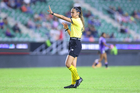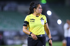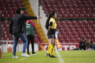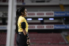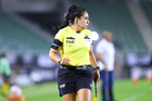 Mazatlán, Sinaloa, 12 de marzo de 2026. Ana Hernández, cuarto árbitro, durante el partido correspondiente a la jornada 11 del torneo Clausura 2026 de la Liga BBVA MX Femenil, entre las Cañoneras del Mazatlán FC y las Rayadas del Monterrey, realizado en el estadio El Encanto. Foto: Imago7/ Juan Carlos Cubeyro.