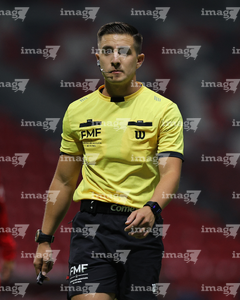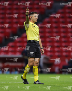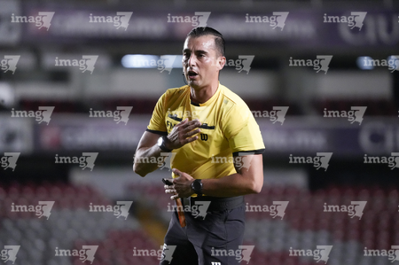Toluca, Estado de México, 12 de marzo de 2026. Figo Rodolfo López, árbitro central, durante el partido correspondiente a la jornada 11 del torneo Clausura 2026 de la Liga BBVA MX Femenil, entre las Diablas Rojas del Toluca y las Pumas de la UNAM, realizado en el estadio Nemesio Diez. Foto: Imago7/Jesús Esquivel