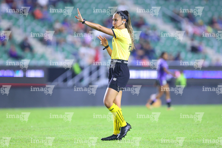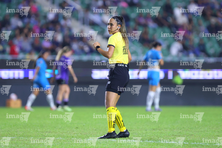 Mazatlán, Sinaloa, 12 de marzo de 2026. María Fernanda Márquez, árbitro central, durante el partido correspondiente a la jornada 11 del torneo Clausura 2026 de la Liga BBVA MX Femenil, entre las Cañoneras del Mazatlán FC y las Rayadas del Monterrey, realizado en el estadio El Encanto. Foto: Imago7/ Juan Carlos Cubeyro.