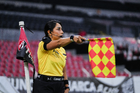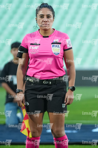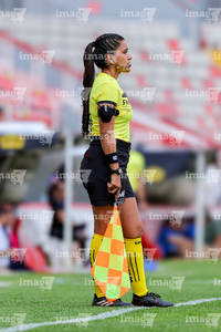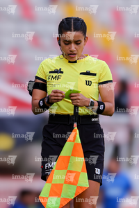 Aguascalientes, Aguascalientes, 15 de marzo de 2026. Paola Gabriela Martínez, árbitra asistente, durante el partido correspondiente a la jornada 12 del torneo Clausura 2026 de la Liga BBVA MX Femenil, entre las Centellas del Necaxa y el Atlético San Luis, realizado en el estadio Victoria. Foto: Imago7 Hugo Martinez