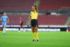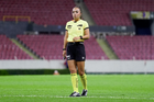 Aguascalientes, Aguascalientes, 15 de marzo de 2026. Ana Paola Hérnandez, árbitra central, durante el partido correspondiente a la jornada 12 del torneo Clausura 2026 de la Liga BBVA MX Femenil, entre las Centellas del Necaxa y el Atlético San Luis, realizado en el estadio Victoria. Foto: Imago7 Hugo Martinez