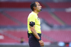 Zapopan, Jalisco, 15 de marzo de 2026. Fernando Portillo, árbitro central, durante el partido correspondiente a la jornada 12 del torneo Clausura 2026 de la Liga BBVA MX Femenil, entre las Chivas Rayadas del Guadalajara y las Tuzas del Pachuca, realizado en el estadio Akron. Foto: Imago7/ Juan Carlos Cubeyro.