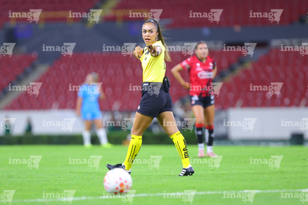 Guadalajara, Jalisco, 16 de marzo de 2026. Diana Velázquez, árbitro central, durante el partido correspondiente a la jornada 12 del torneo Clausura 2026 de la Liga BBVA MX Femenil, entre las Rojinegras del Atlas y las Rayadas del Monterrey, realizado en el estadio Jalisco. Foto: Imago7/ Juan Carlos Cubeyro.